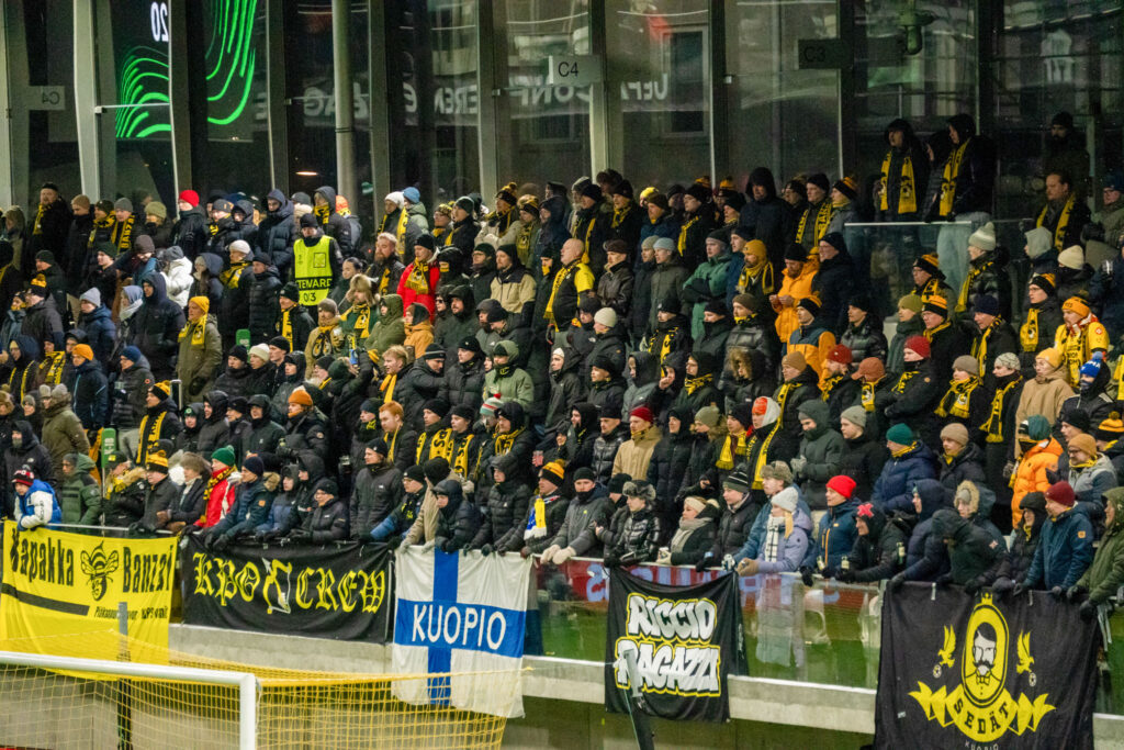 Kuopion Palloseura kärsi 0–2-tappion Lech Poznańille Konferenssiliigan playoff-vaiheen ensimmäisessä osaottelussa. Tammelan Stadionilla nähtiin torstai-iltana euro-ottelu, jossa tapahtumat kentällä kääntyivät aikaisen alivoiman myötä vieraille – mutta katsomossa tunnelma kantoi keltamustia läpi illan. Yleisöä oli paikalla 3756, ja Tammela eli vahvasti mukana jokaisessa tilanteessa. Laulu raikasi, rytmi säilyi ja kannustus jatkui läpi ottelun – tunnelma oli alusta loppuun mainio ja euroillan arvoinen.